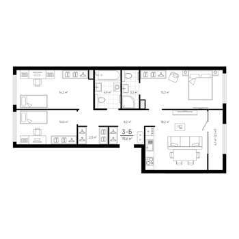 Площадь от 73.35 м2