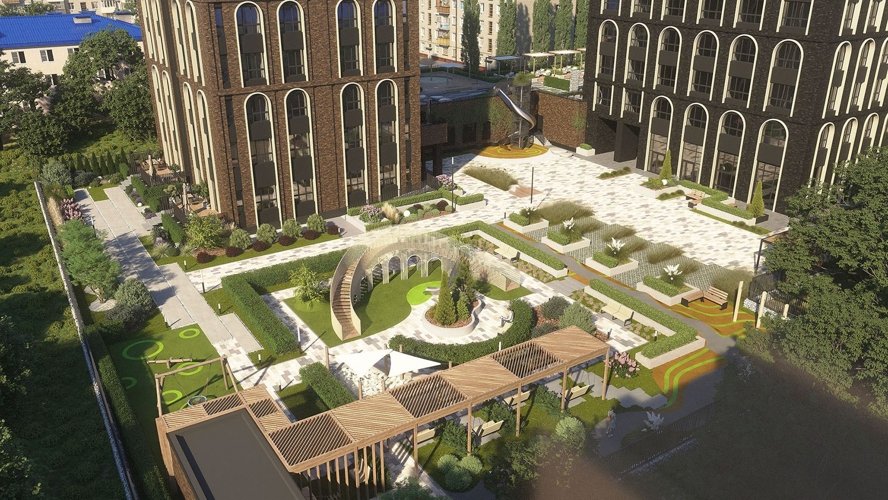 Жилой комплекс включает в себя 2 корпуса переменной этажности: от 8 до 29 этажей. В проекте две секции объединены стилобатом с единым лобби и коммерческими помещениями. Вход в корпус и на этаж осуществляется через распознавание по лицу, въезд на территорию комплекса осуществляется через распознавание по номеру.