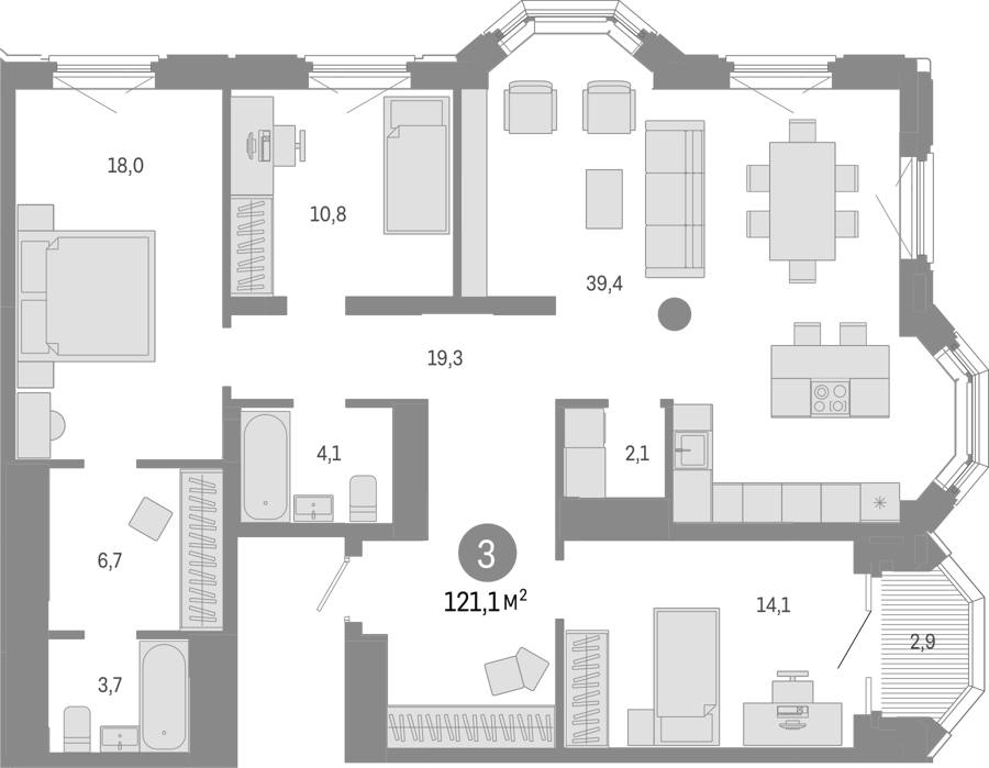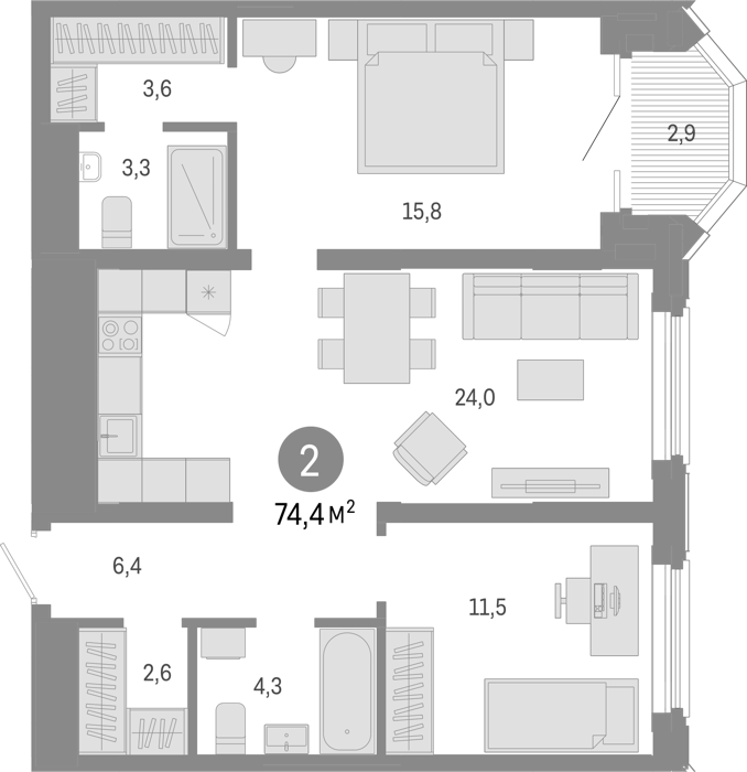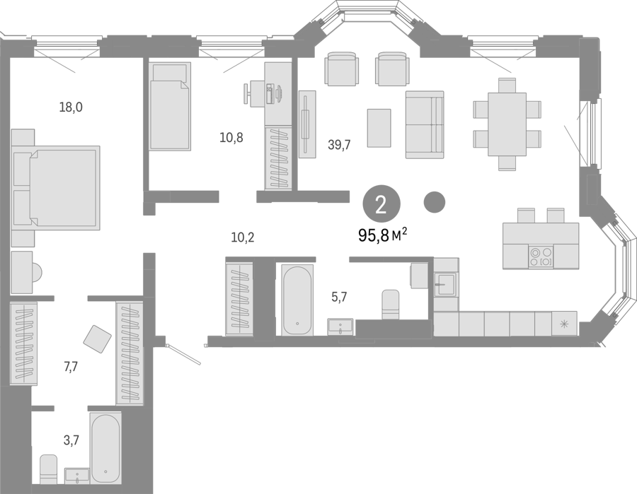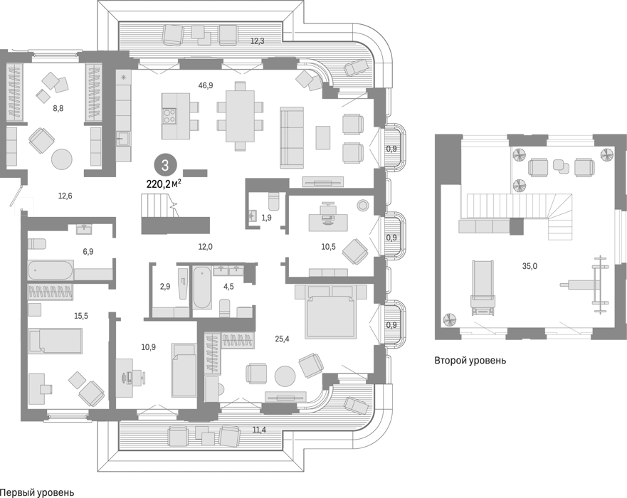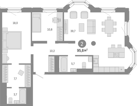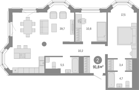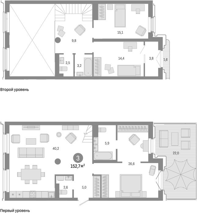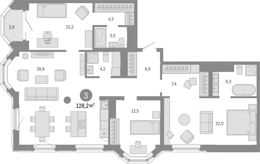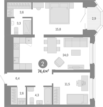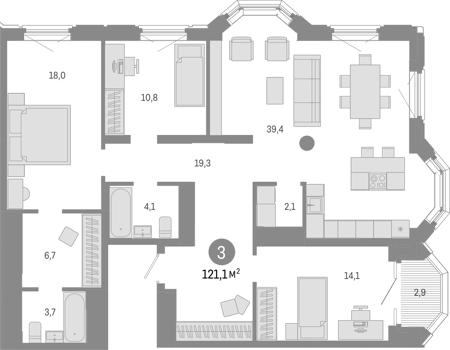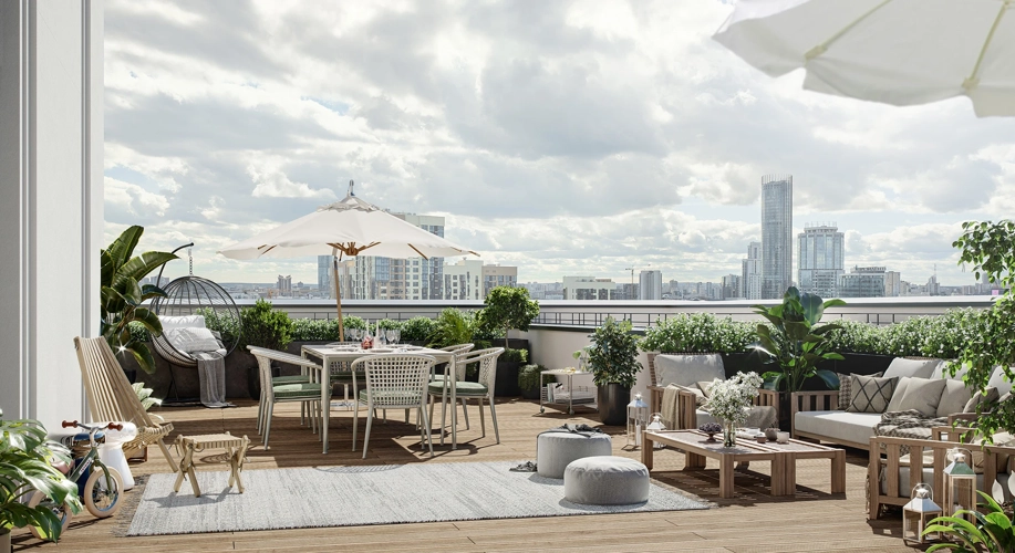 У квартир на первых и последних этажах есть террасы. Они расширяют жилое пространство и дают возможность разнообразить досуг. На террасу выходят большие окна в пол, что даёт квартире больше естественного света.